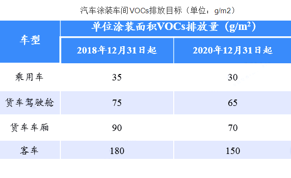 环保涂料渐成主流: 环境污染的问题日益严重,国家的环保政策也在步步逼紧。对于汽车而言,除了汽车尾气排放造成空气污染外,汽车涂装生产线的VOCs排放问题也不容忽视。2017年12月,中国汽车技术研究中心按照《行动计划》要求,制定了《汽车行业挥发性有机物削减路线图》,提出汽车行业VOCs削减的目标、技术路线和示范案例等。2018年12月31日起,汽车涂装车间里乘用车、货车驾驶舱、货车车厢和客车的单位涂装面积VOCs排放量应分别控制在35、75、90、180 g/m2以内。 溶剂型涂料是传统的汽车涂料,是以有机物作为主要溶剂;而水性涂料是以水作为主要溶剂的涂料,水性涂料中挥发性有机化合物排放比溶剂型涂料降低了60% ~ 70%,传统的溶剂型涂料VOC 排放量约125g/m2,为了达到环保要求,汽车涂料正在向水性化、高固体分、粉末涂料3 个主要方向发展。水性化技术是最有效的途径之一,尤其是目前最流行的金属闪光涂层,其VOC 排放量占总量的66%,该层涂料水性化后,整车VOC 排放量可减少一半以上。如果车身涂装全部采用水性涂料,则VOC 排放量可降低至27g/m2,可以达到最严格的环保要求。