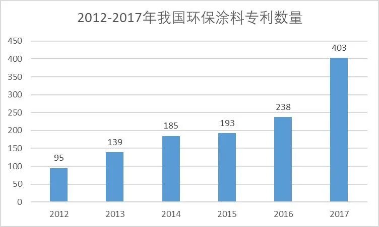 2017年以后环保涂料专利数量显著上升 目前,我国节能减排潜力大,任务艰巨。2012-2016年,我国环保涂料行业的的专利数量呈缓慢上升趋势,而在2016年国家颁布了一系列环保涂料相关政策之后,我国环保涂料专利数量得以快速提升,上升至403件,同比去年增长69.33%。可见,在环保政策施压之下,我国环保涂料行业加紧了对环保产品研发的投入。